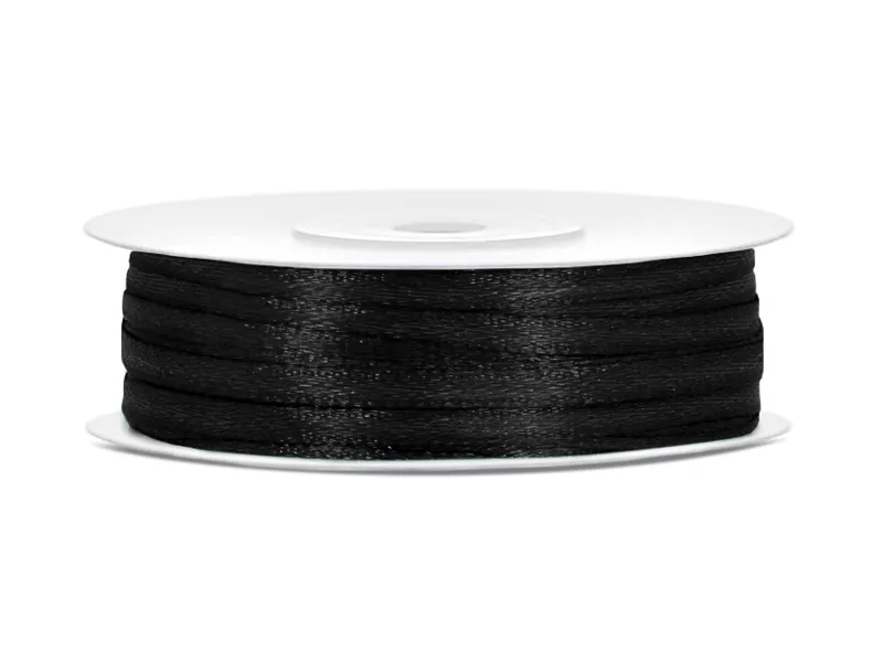 Σατέν κορδέλα σε μαύρο χρώμα ιδανική για διακόσμηση δώρων, χειροτεχνίες και για να στολίσετε σακουλάκια με κεράσματα.